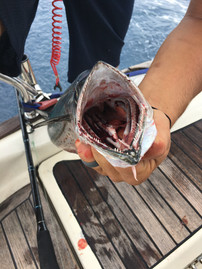 o When filleting the fish off the transom, our resident barracuda buddies were
