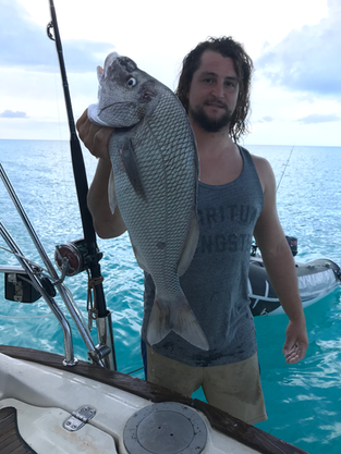 o We motorsailed the entire way, and had high hopes for trawling along the deep ocean bank on our way to Eleuthera.