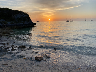 o The next day, SV Vesna (Jack, Julia, and kiddos Reuben, Declan, and Ivy all from Australia) joined us and we reunited for sundowners: drinks and snacks while watching the sunset.